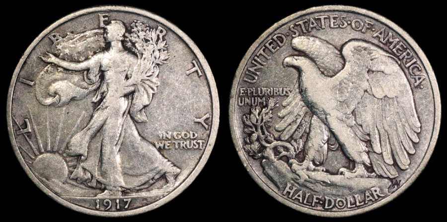 These are 1916 and 1917 walking liberty half dollar coins worth money. Look at the coin again and post. Silver dollar values are a minimum of $25.97 as of 7/12/2021 with silver priced in the $25.97 per ounce range. One dollar is divided into 100 cents (symbol: